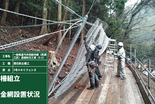 - ロープ伏工L=1,865m、エネルギー吸収型落石防護柵L=23m